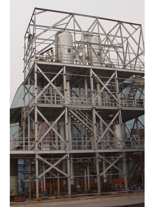 效體內部為排列的細管,管內部為產品,外部為蒸汽,在產品由上而下的流動過程中由于管內面積增大而使產品呈膜狀流動,以增加受熱面積,通過真空泵在效體內形成負壓,降低產品中水的沸點,從而達到濃縮,產品蒸發溫度為60℃左右。