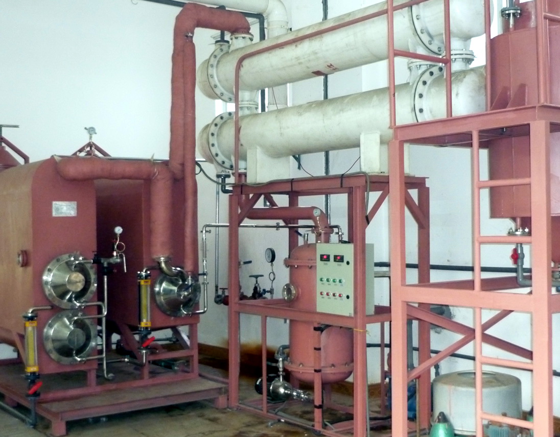 本設備由加熱器、強制循環泵、蒸發分離器、結品器、冷凝器、各種物料泵、冷凝水泵、真空泵、操作平臺、電器儀表控制柜及界內管道閥門等組成。